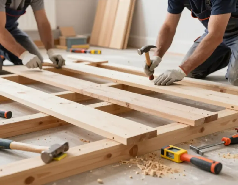 Подкладки нарушают монолитность конструкции, создают точки напряжения и могут привести к деформации, скрипу и преждевременному износу пола. Лаги должны устанавливаться ровно, без зазоров.